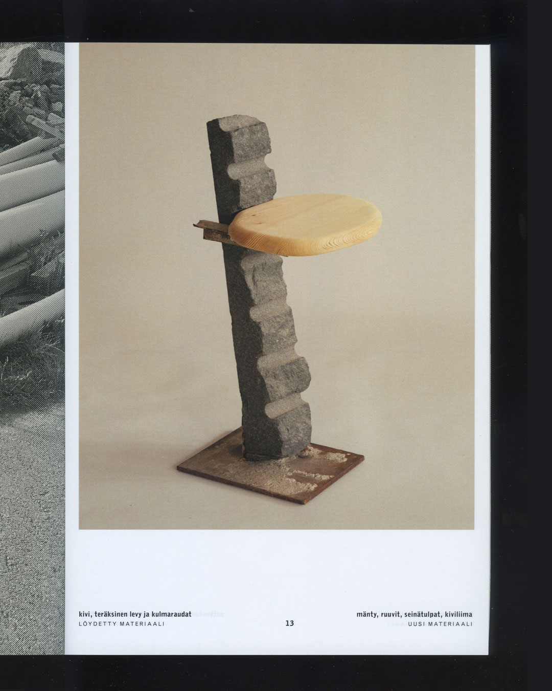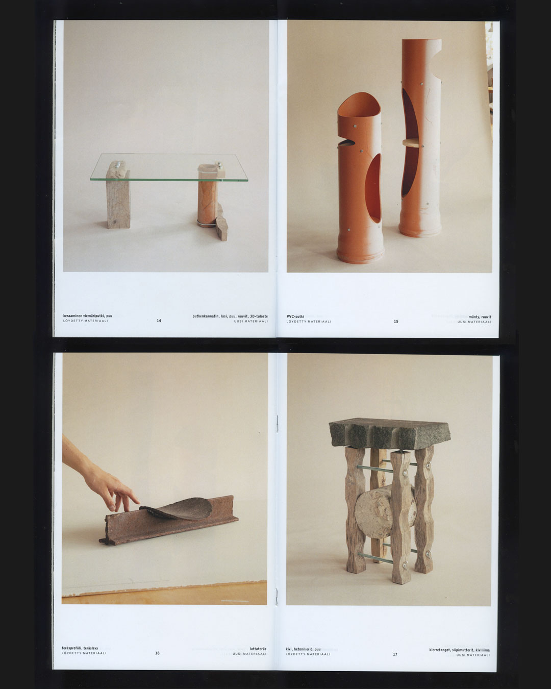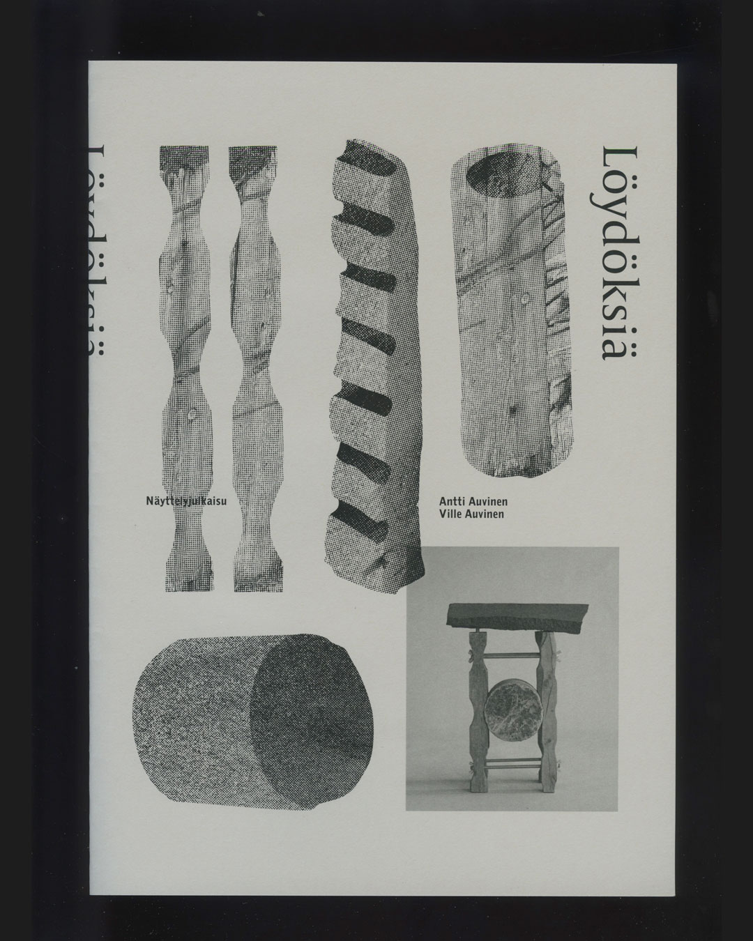 Design of Löydöksiä, an exhibition publication for an experimental furniture project by Antti Auvinen and Ville Auvinen.