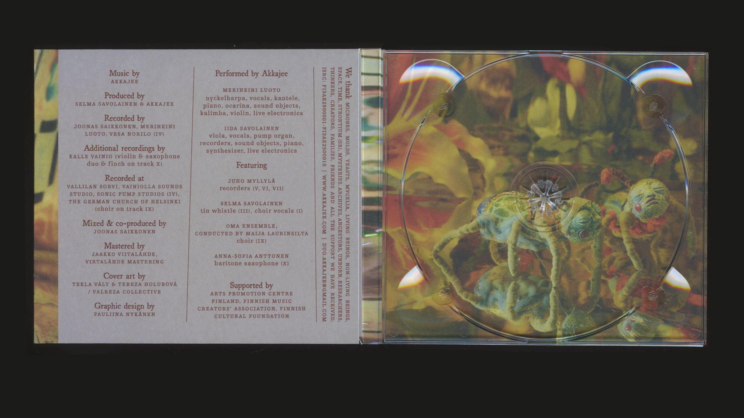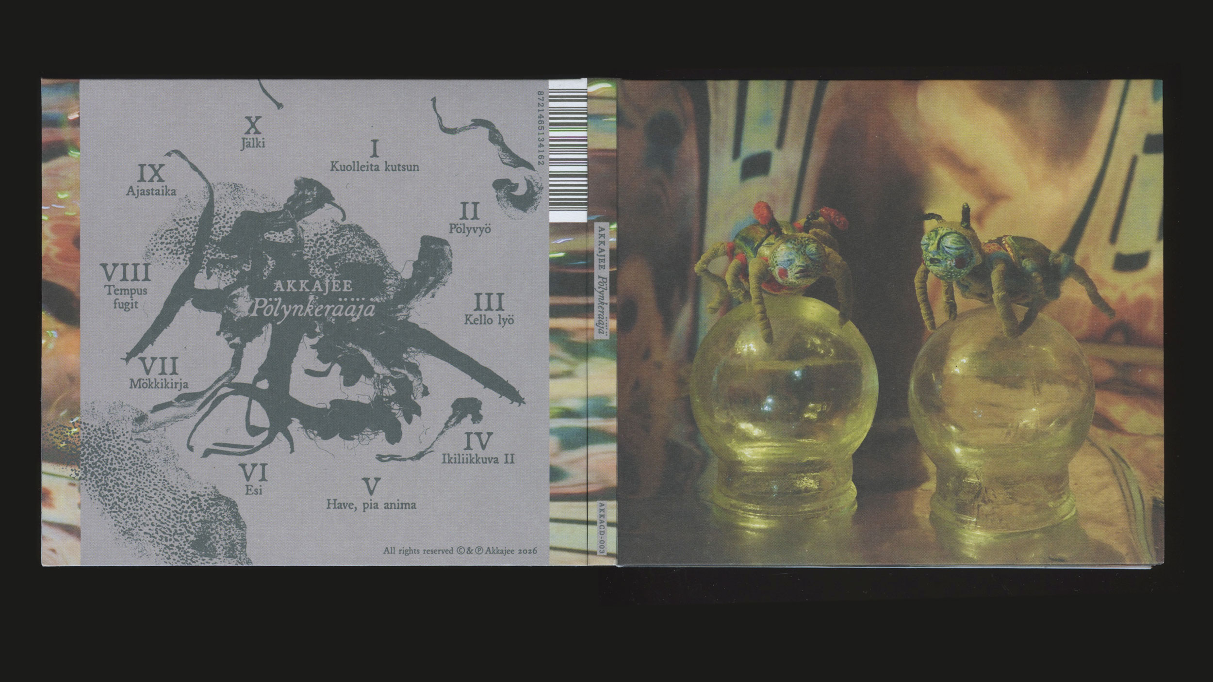 Graphic design for Akkajee's album Pölynkerääjä. The cover artwork and photographs are created by Valreza Collective.